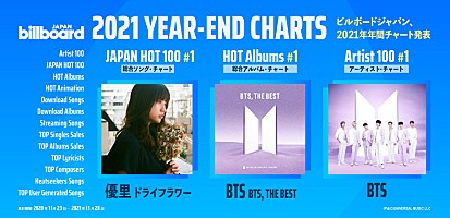 ビルボードジャパン、2021年年間チャート発表~【JAPAN HOT 100】は優里「ドライフラワー」、【HOT Albums】はBTS『BTS, THE BEST』が獲得 | Special | Billboard JAPAN